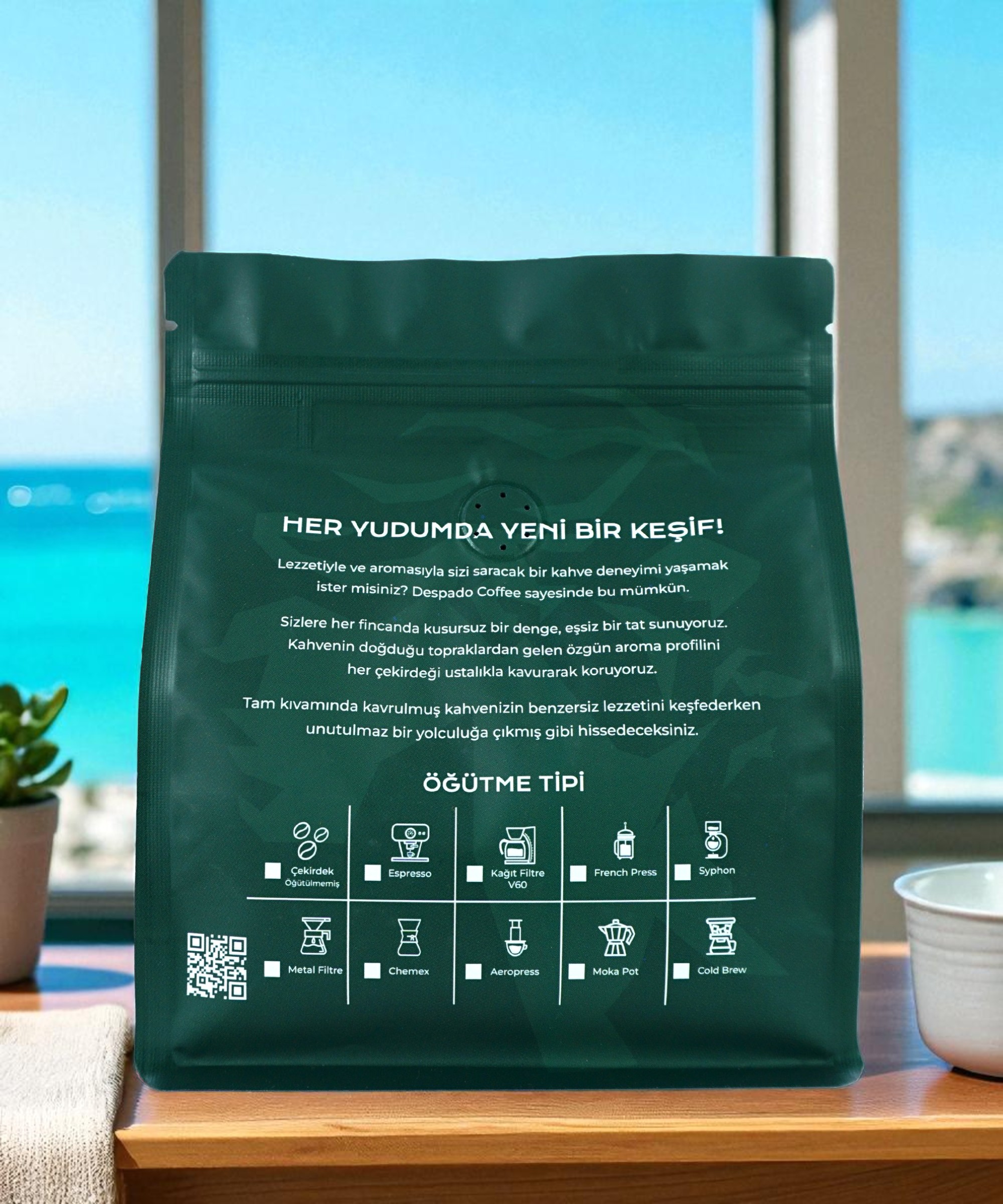 Despado Coffee Brazil 250 Gr, sipariş sonrası taze kavrularak özel valfli ambalajında gönderilir. Böylece kahvenin aroması ve tazeliği maksimum seviyede korunur.