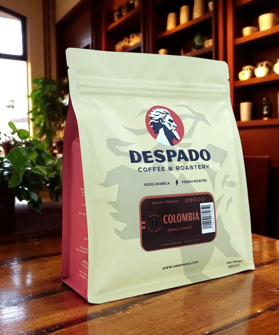 Despado Coffee Colombia 250 Gr, sipariş sonrası taze kavrularak özel valfli ambalajında gönderilir. Böylece kahvenin aroması ve tazeliği maksimum seviyede korunur.